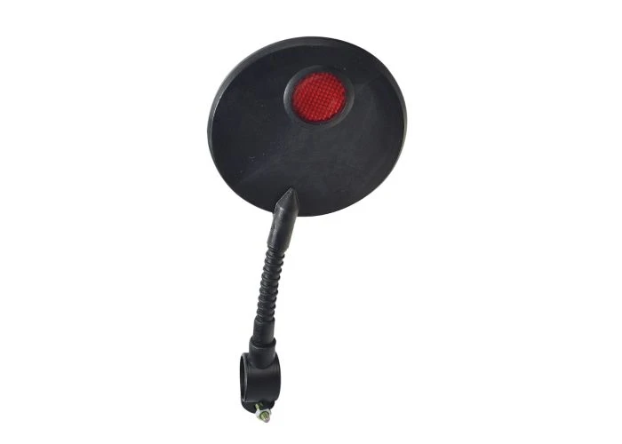 The clamp-on holder will quickly fit just about anything that uses a bar or tiller in the standard 7/8″ diameter. You can flex the little black plastic gooseneck rod from about 45 to almost 90 degrees, putting the 3-3/8″ (85 mm) mirror in the position you want. There is even a little red reflector on the dark side for added visibility. Although it is an economical alternative to much higher priced mirrors, it will do the job it was designed to do, and it will do it well.